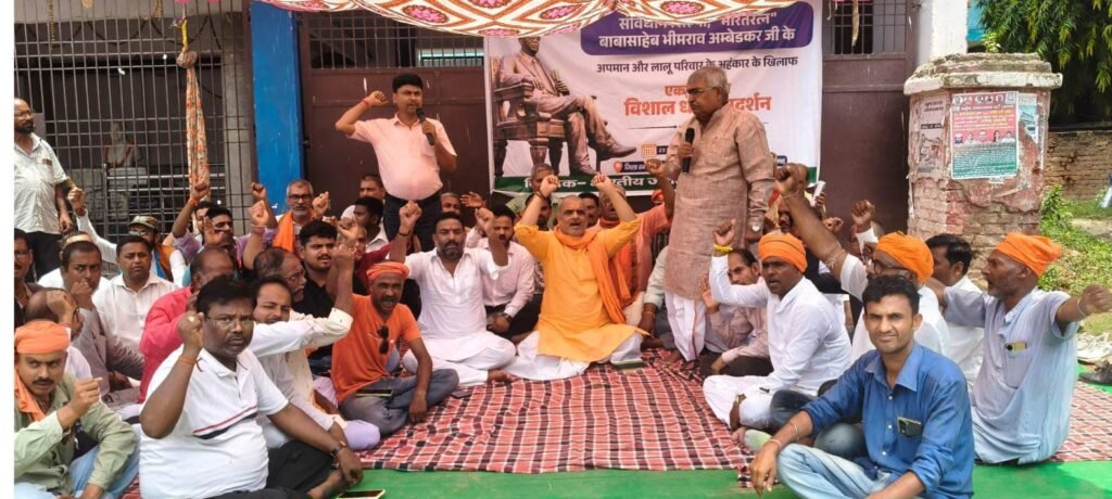 मधुबनी में सोमवार को दिन के 10बजे सुबह से भारतीय जनता पार्टी के जिला अध्यक्ष प्रभाशूं झा एवं जिला महामंत्री रंजीत यादव के संचालन में पूरे बिहार सहित मधुबनी समाहरणालय के सामने बाबा डा भीम राव अम्बेडकर जी के प्रतिमा के समक्ष राष्ट्रीय जनता दल प्रमुख लालू प्रसाद यादव द्वारा संविधान निर्माता बाबासाहेब डा भीम राव अम्बेडकर जी का अपमान और लालू परिवार के अहंकार के विरोध में एकदिवसीय विशाल धरना विरोध प्रदर्शन कर सभा का आयोजन किया गया।
